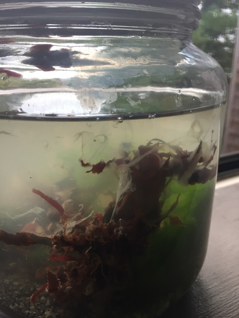 After a week and a half of slow deterioration, the class decided to add more algae and remake my first jar attempt with the same characteristics as before.
